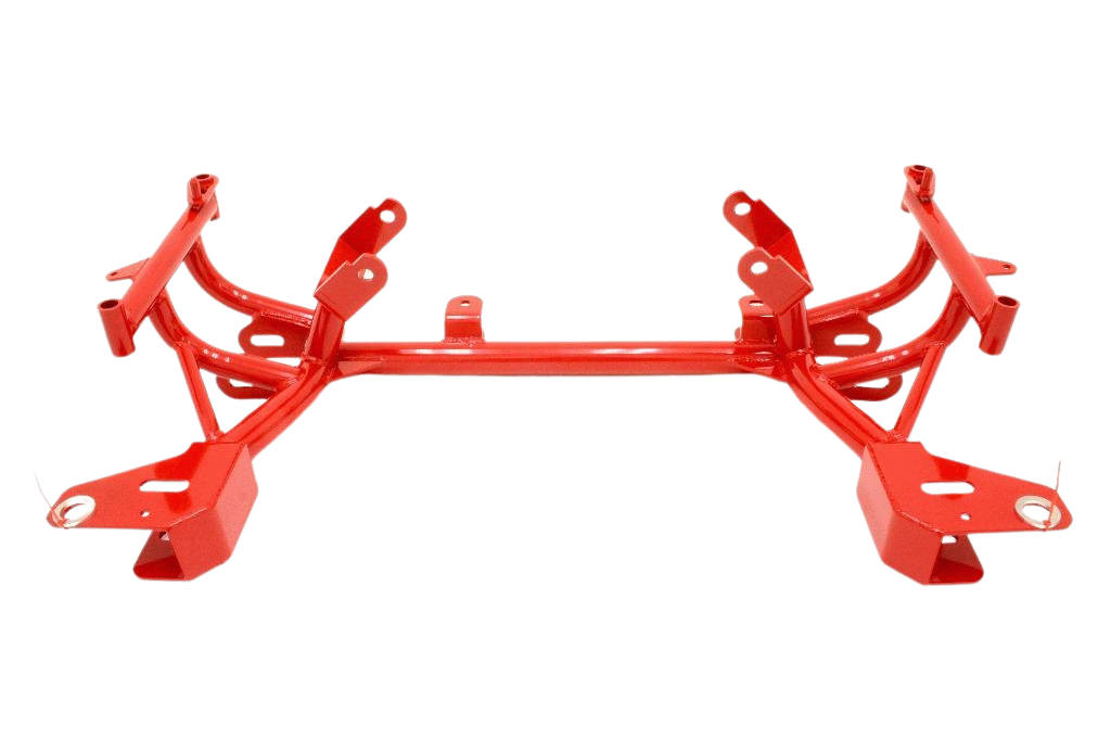 The LS1 K-Member eliminates both cast iron motor stands by using a tubular integrated design. This unique design allows an even further weight reduction than anything our competitors have to offer. Total K-Member weight including both frame stands is 24.5 lbs, compare this to our competitors 29 lbs.