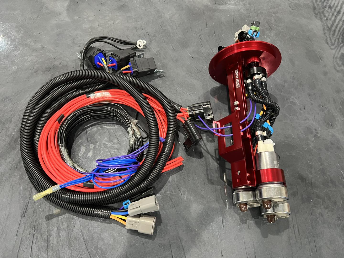 -Plug and Play Triple pump wiring harness plugs into the hanger assembly and includes all powers, grounds, and trigger wires to set the 2nd pump up off a Hobbs switch or Eboost2. Primary pump uses the factory trigger.