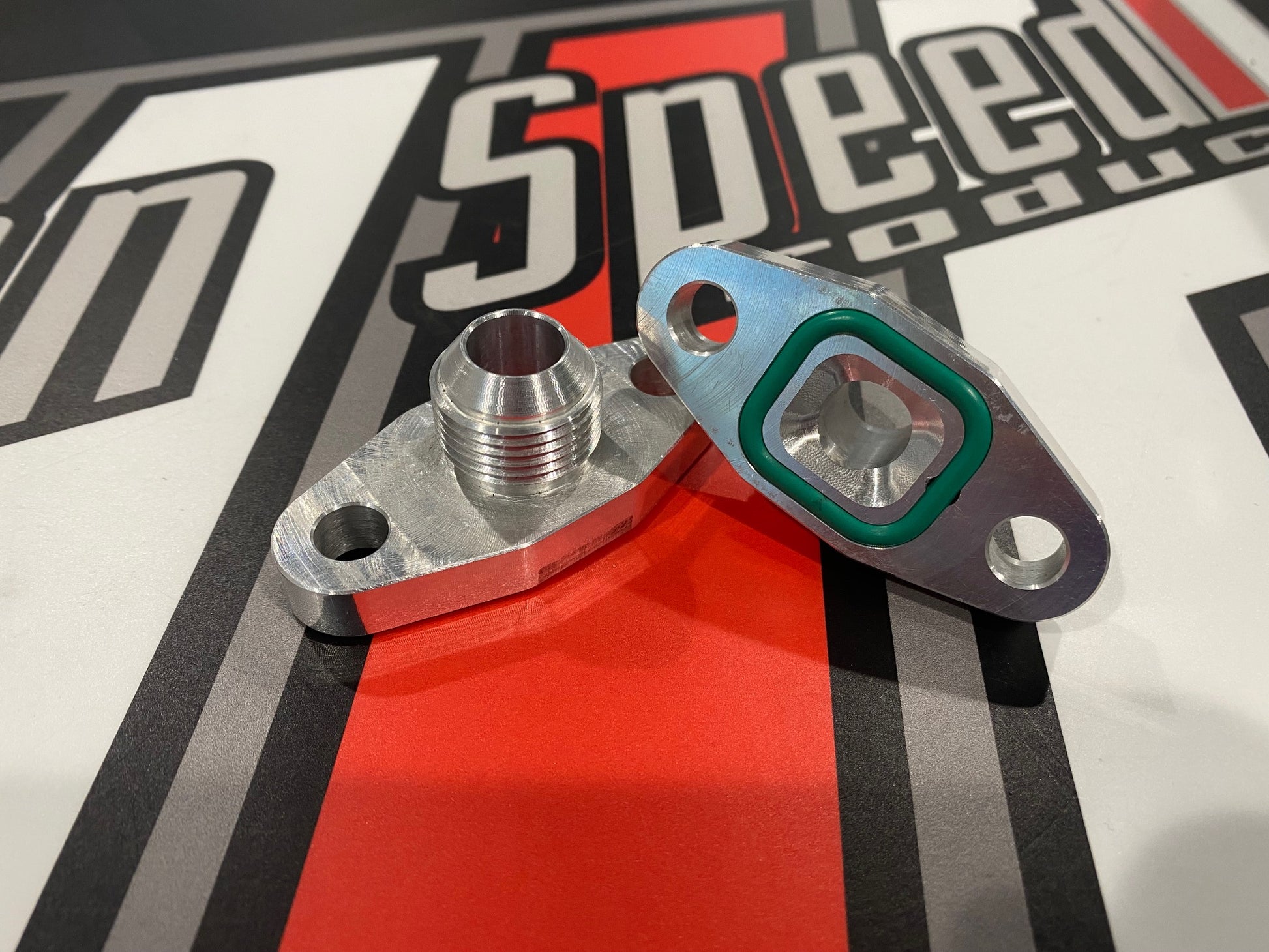 Huron Speed Oil Drain Flange for T4/T6 turbos w/ 2″ bolt spacing on the drain